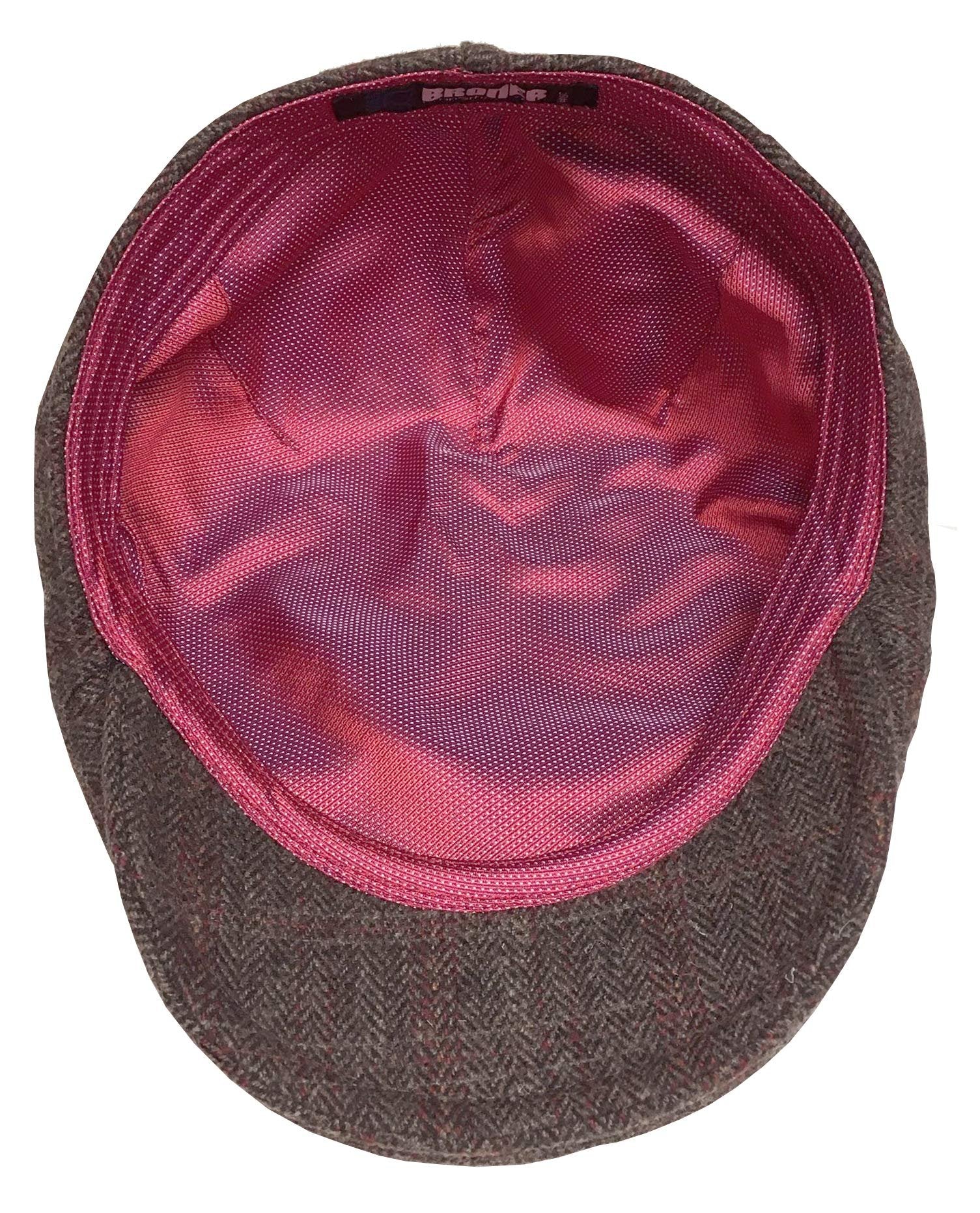 Broner Mens Aberdeen Wool Blend Plaid Ivy Cap with Red Satin Tie Lining, Brown Plaid, XL