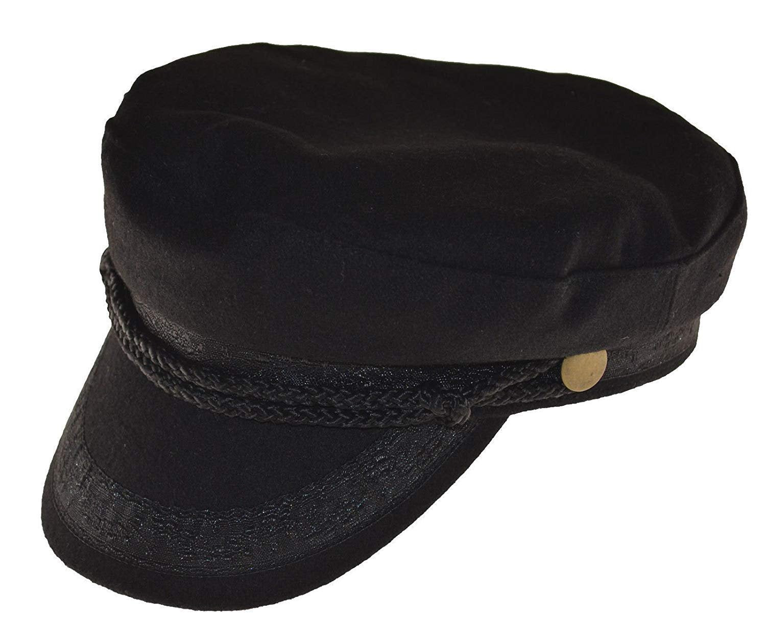 Broner Wool Blend Fisherman Cap Greek Sailor Hat in Black with Gold Button (Small, Black)