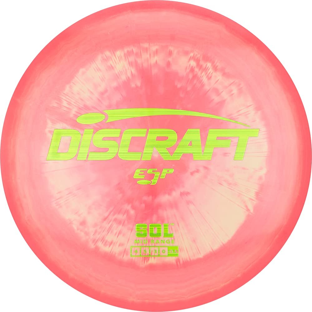 Discraft ESP SOL Mid-Range 170-172 Gram Golf DiscThe Sol is a flippy midrange that has a really unique feel.The mold has a shallow rim that is perfect for fan grips and players with smaller hands.It is a smaller diameter midrange than a Buzzz or Comet so it has a different feel and flight than either of those molds.Model Year: 2022