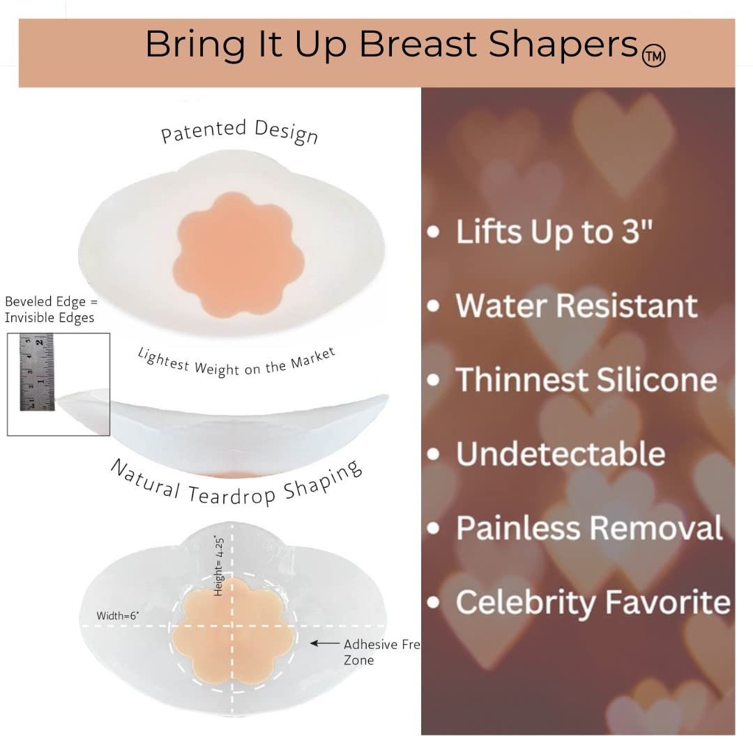 Specifically designed to provide maximum lift, Bring It Up Breast Shapers are hypoallergenic and provide total nipple coverage while smoothing, lifting, and supporting your breasts