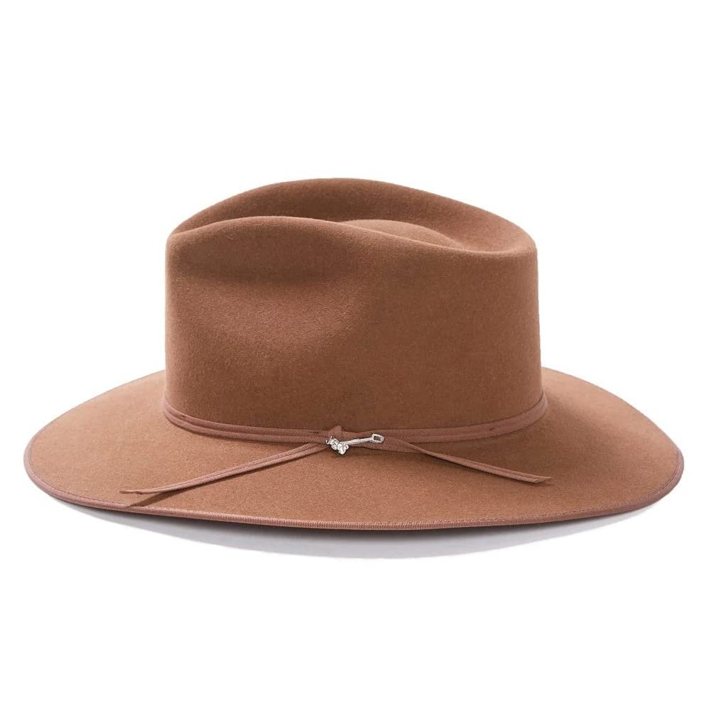 The Stetson Dune is a top-quality hat included in the Stetson Gun Club Collection of durable felt hats. Interior leather sweatband for the 'ultimate in fit and comfort'. The Stetson Dune has a 4 1/4" teardrop crown and a dimensional brim that measures 3" on each side and 3 1/4" front and back. The hat has a grosgrain hat band and a grosgrain binding around the edge of the brim. Comes in an authentic Stetson Western hat box at no additional charge. Made in Texas.From Stetson's Gun Club Collection4X Beaver Fur hatBound EdgePinched Front CrownStetson hat box for storage includedCrafted in the USA